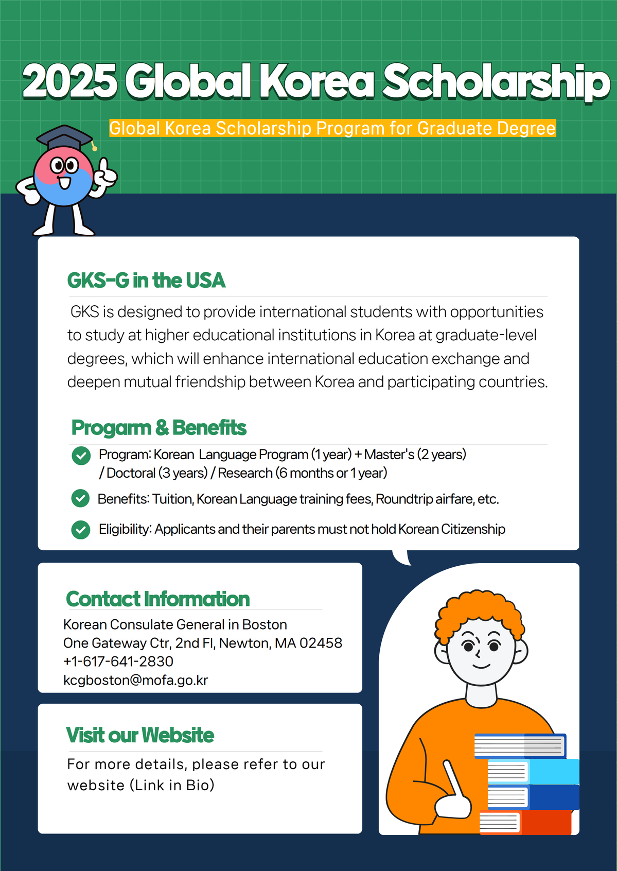 < 2025 Global Korea Scholarship for Graduate Degrees(GKS-G) in the USA >